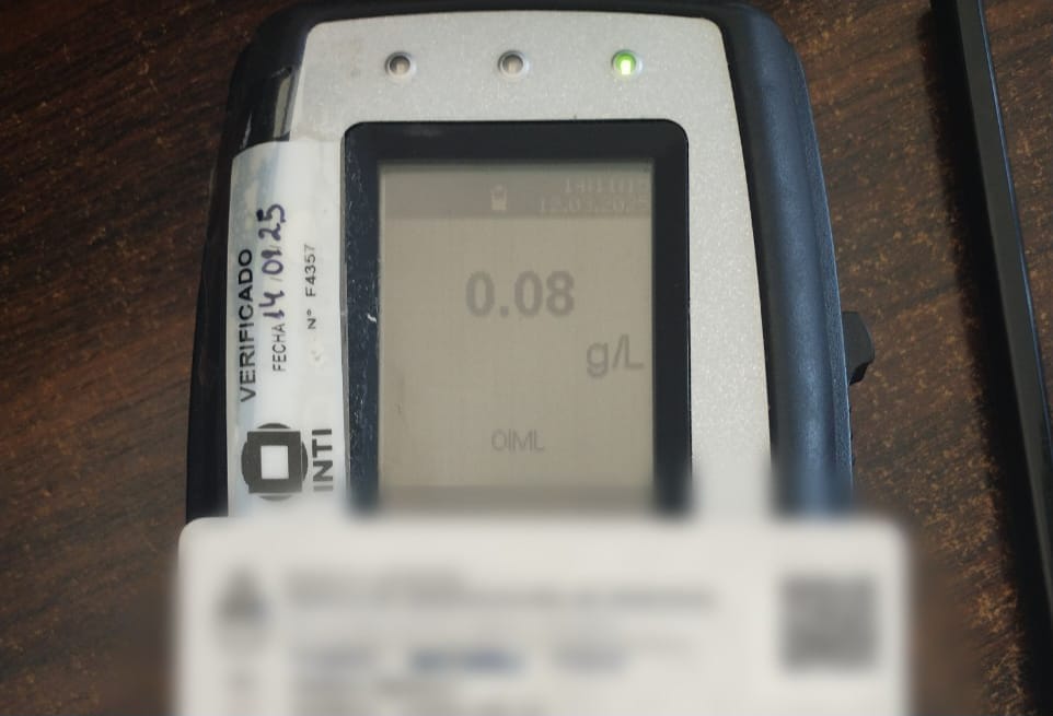 Al realizar el control con aparato electrónico (alómetro), se detectó que el conductor presentaba presunto aliento etílico, por lo que fue trasladado al sector de guardia, donde se le efectuó un test de alcoholemia en presencia de un testigo hábil. La medición arrojó un resultado de 0.08 g/l, superando el límite permitido para la conducción.