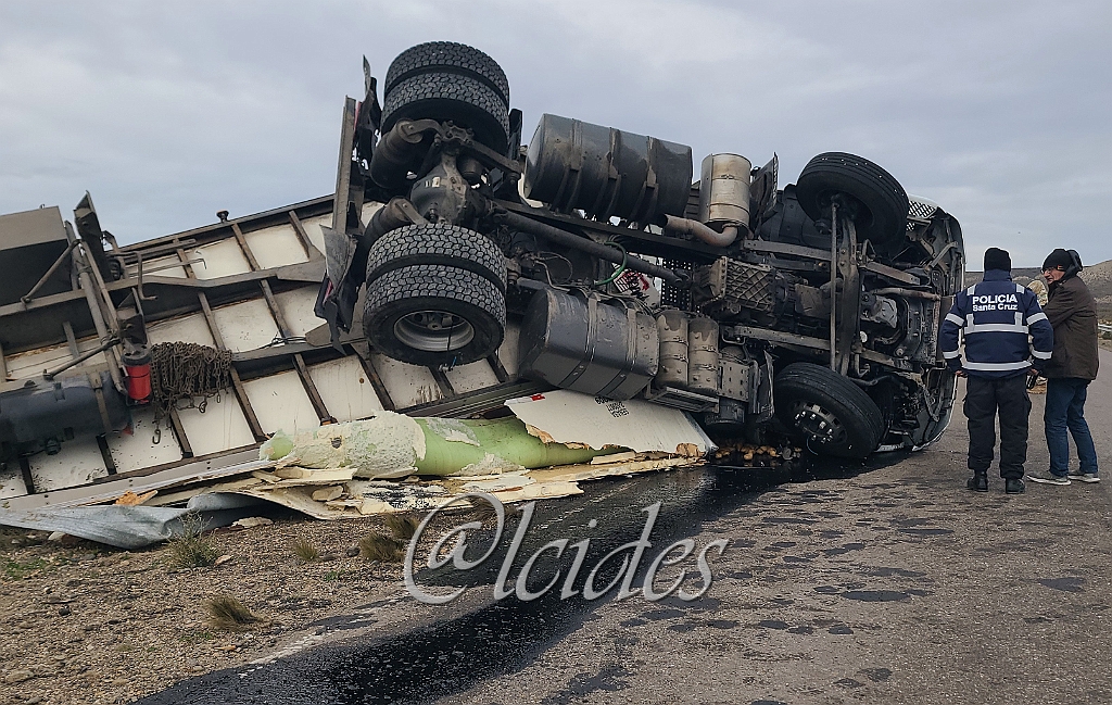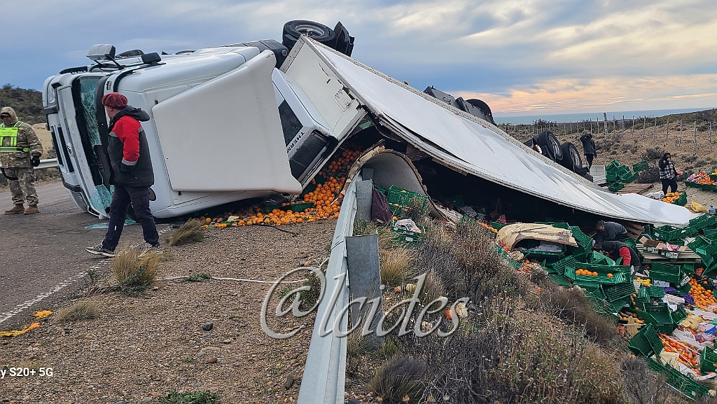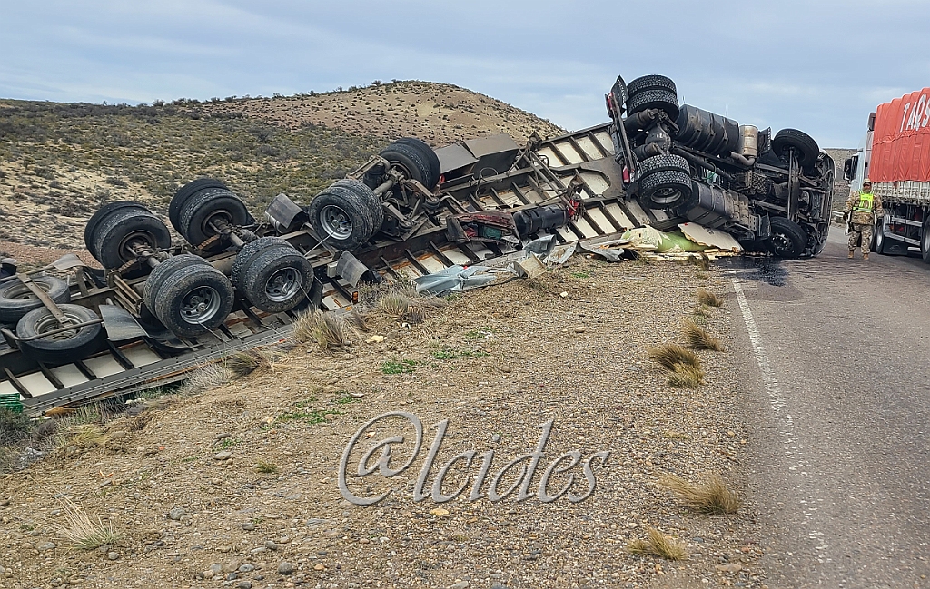 Volcó camión entre Cañadon León y Cañadon Minerales frutas y hortalizas