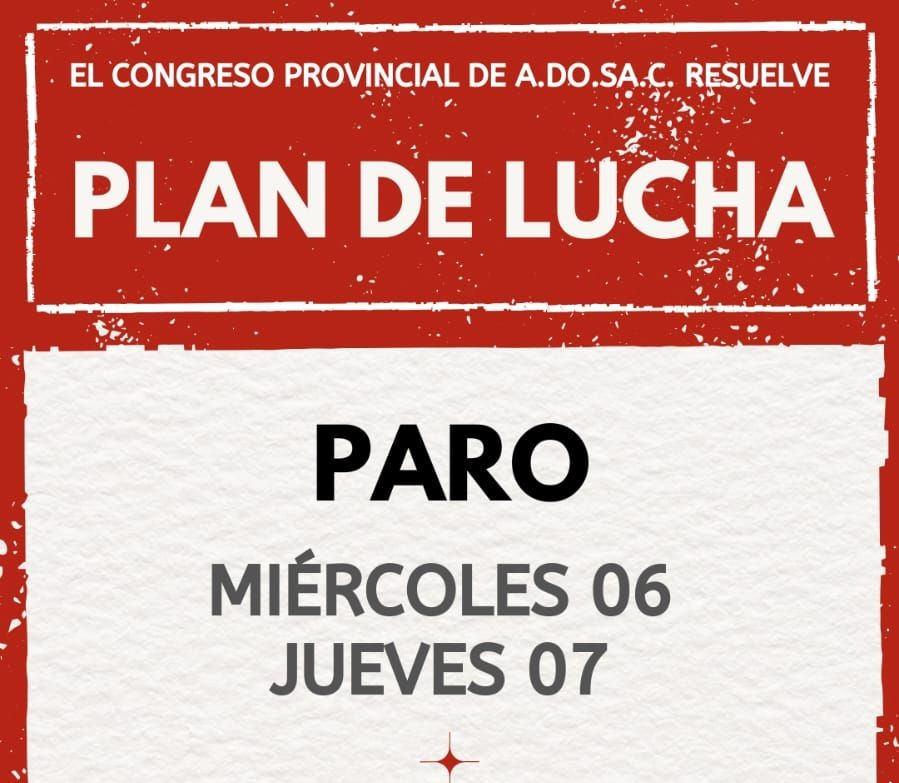 El Congreso Extraordinario de ADOSAC resolvió llevar adelante un plan de lucha