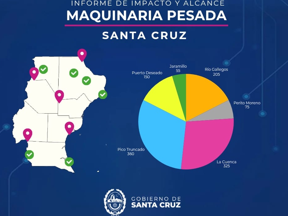 El Gobierno de la Provincia de Santa Cruz, a través de Distrigas S.A., Vialidad Provincial y Servicios Públicos Sociedad del Estado (SPSE), junto a Yacimientos Carboníferos Río Turbio (YCRT), brindó el Programa de Capacitación en Maquinaria Pesada, logrando un gran éxito en tan solo tres meses. Con la participación de más de 1.200 personas, la iniciativa se ha desplegado en seis lugares clave: Río Gallegos, la Cuenca Carbonífera, Perito Moreno, Pico Truncado, Puerto Deseado y Jaramillo.