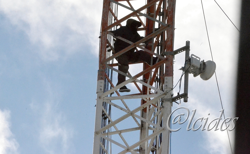 Desocupado Evita Social se trepó a una antena de la municipalidad