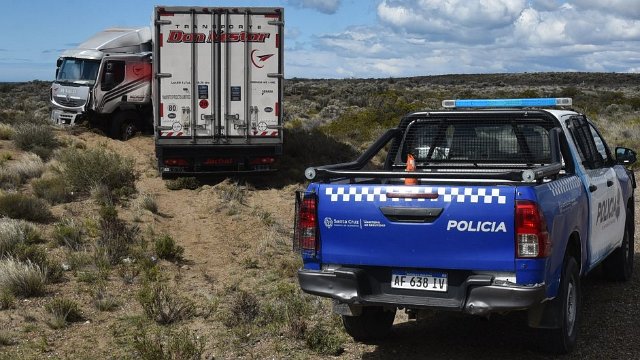 En el lugar del accidente, un equipo de El Patagónico pudo observar que el pesado rodado dejó marcada una extensa frenada en el pavimento que cruzaba hacia el carril contrario al sentido de su circulación y luego del choque sobrepasó la banquina que da hacia la costa, quedando en posición de tijera.