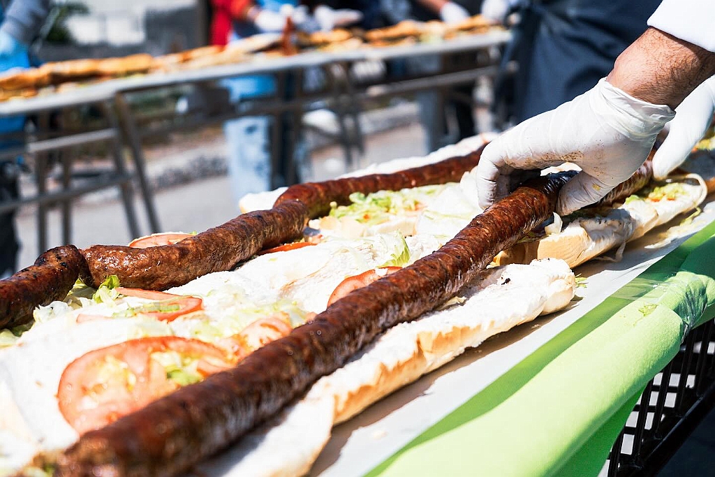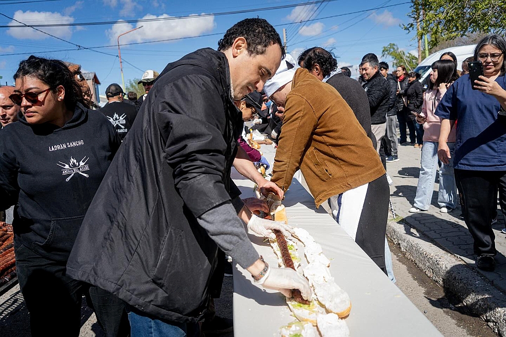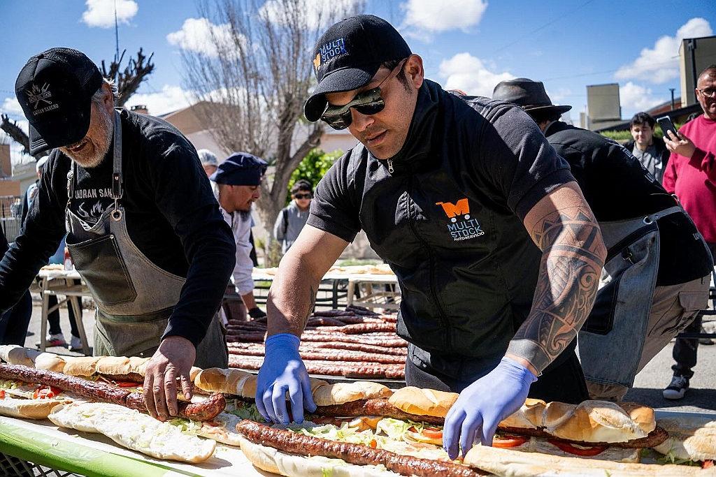 Las Heras entra al Guinness con un choripán de 393 metros