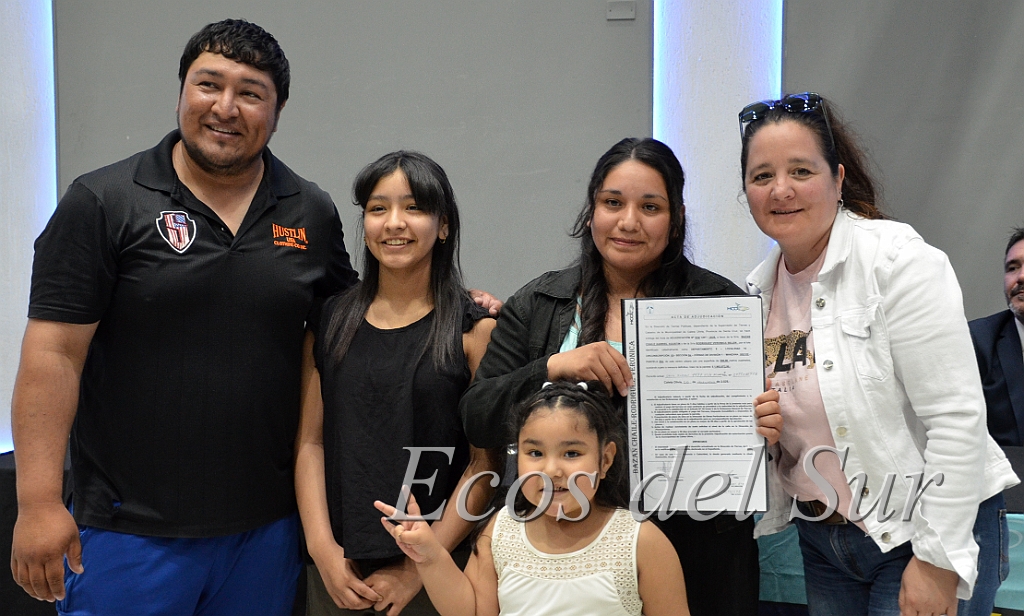 Encabezaron del acto el jefe de Gabinete Mariano Mazzaglia, el secretario de Planificación Lucas Haidamaschuk, la supervisora de Tierras Patricia Reynoso, la directora de Tierras Yanina Labado, el presidente del Honorable Concejo Deliberante Facundo Belarde y la concejal Iris Casas. También acompañaron los funcionarios de todas las áreas que compartieron con los vecinos la entrega de los instrumentos legales.