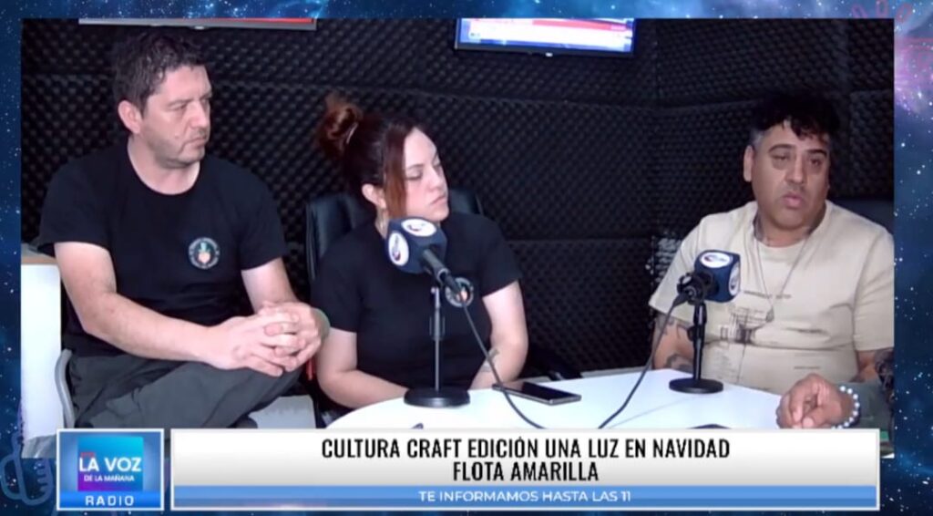 Durante la entrevista, Javier Maldonado —referente de Flota Amarilla— repasó el trabajo que la fundación realiza diariamente: apoyo a personas con discapacidad, actividades recreativas, labores comunitarias en los barrios y la entrega de 50 viandas por día para quienes más lo necesitan.