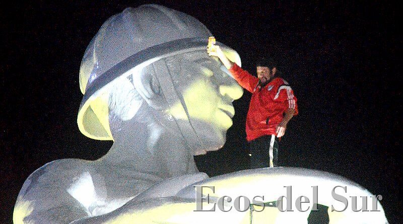 Los festejos de los simpatizantes de River por el triunfo ante Boca Junior en el superclásico pudieron haber finalizado en una tragedia en la noche de este domingo cuando un hincha fanático del “Millonario” se trepó el Monumento al Obrero Petrolero y cayó de espaldas unos cuatro metros hasta la base, pero anteriormente tiro una mochila que por centimetros casi impacto en chicos que se encontraban en la base del icono caletense.