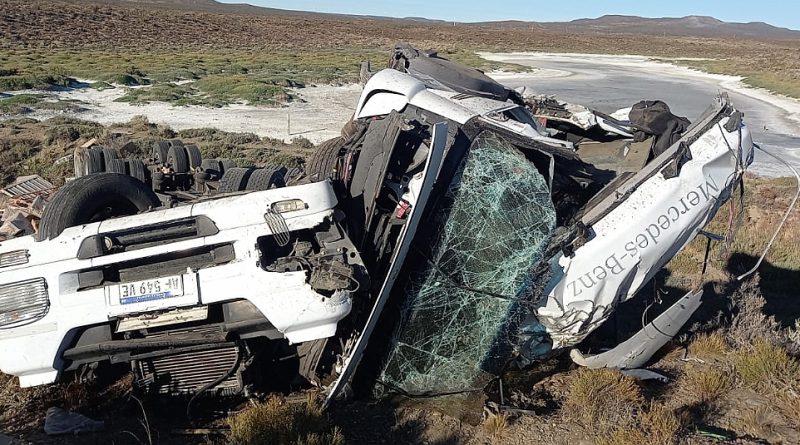 Caleta Olivia: Conductor gravemente herido al volcar camión en el acceso sur