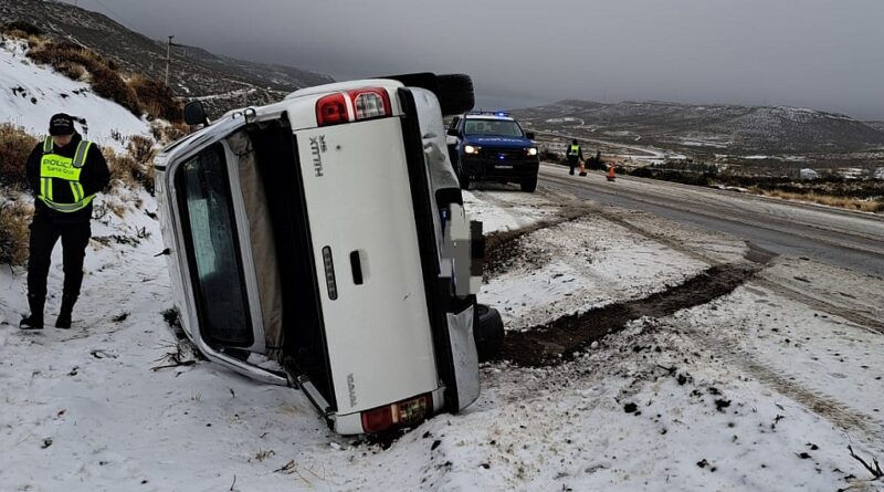 Este martes, hubo en las rutas de Santa Cruz tres vuelcos y un choque que se registraron en cercanías de las comisiones de fomento de Koluel Kayke y Cañadón Seco por la acumulación de nieve y escarcha sobre extensos trayectos de las rutas provinciales Nº 43 y 12.