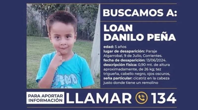 El Sistema Federal de Búsqueda de Personas Extraviadas y Desaparecidas del Ministerio de Seguridad ofrece una recompensa de $5 millones para todo aquel que aporte datos certeros de dónde podría estar Loan Danilo Peña, el menor de cinco años que desapareció en Corrientes.