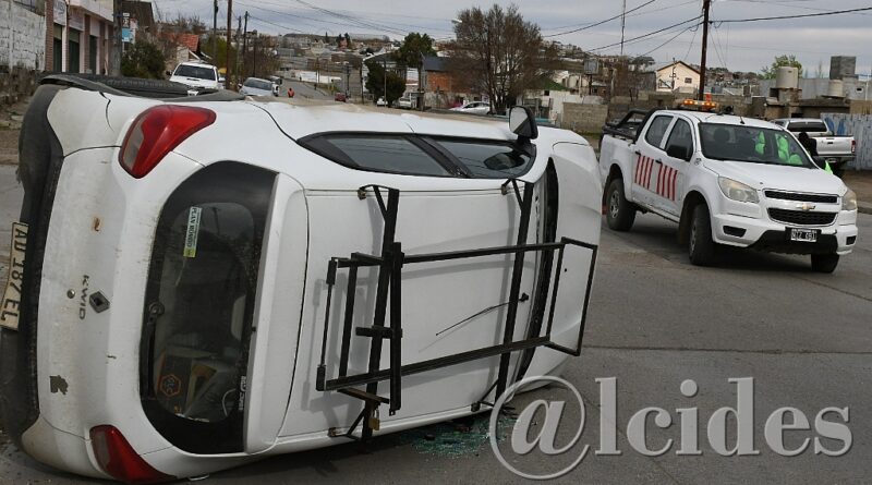 Tras ser impactado, el Renault se desplazó hasta golpear con la rueda de otra camioneta estacionada que le restó inercia pero igualmente se desestabilizó y volcó quedando con daños de consideración.
