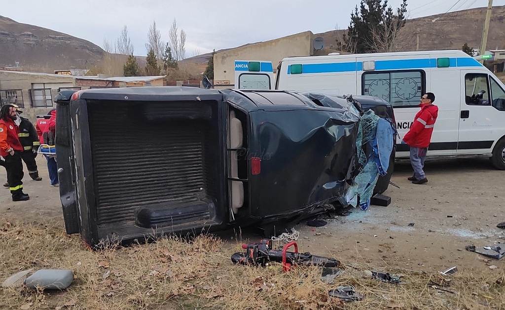 Choque en calafate dejo una Chevrolet S10 volcada y personas lesionadas