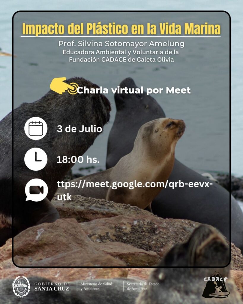 La charla se realizará este jueves 3 de julio, a las 18:00 por la plataforma de videoconferencias MEET de Google, mediante el siguiente enlace ttps://meet.google.com/qrb-eevx-utk, y tendrá como principal disertante a la profesora Silvina Sotomayor, ambientalista y voluntaria de la Fundación CADACE de Caleta Olivia.