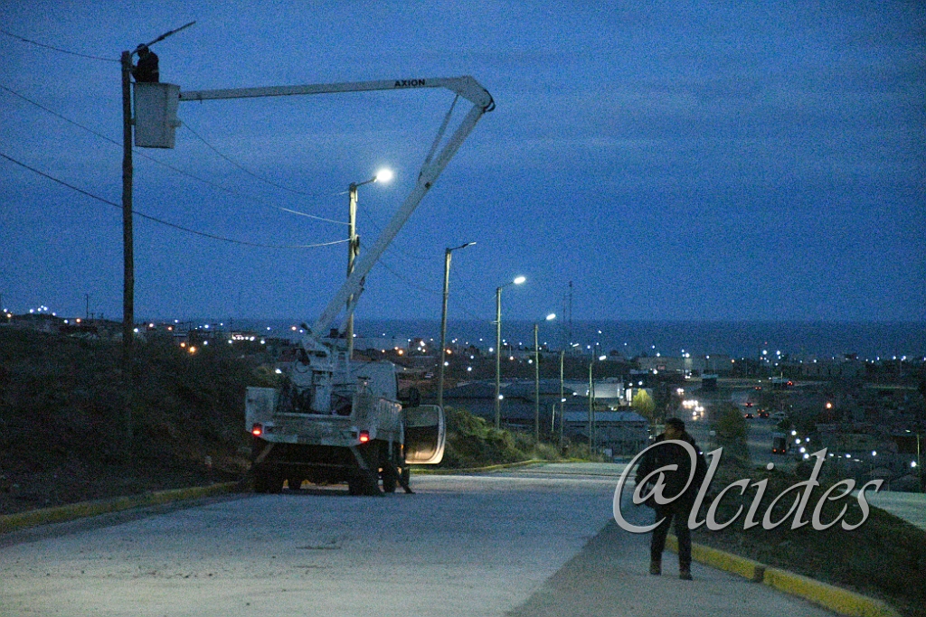 La obra de la Avenida Tierra del Fuego entra en su etapa final, con varias áreas municipales trabajando en conjunto de cara a la inauguración de este domingo. El sábado se instalaron palmas para luminarias en el acceso a la rotonda del barrio Rotary 23 y se realizaron tareas de limpieza y orden en el sector.