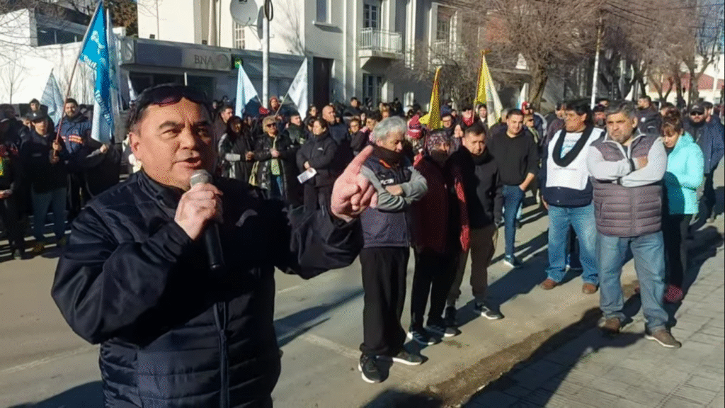 El secretario general del SOEM Río Gallegos, Pedro Mansilla, fue la voz más fuerte del reclamo. En su discurso, visiblemente encendido, Mansilla denunció lo que describió como un “modelo de ajuste” que la provincia estaría acompañando y que ha deteriorado los servicios de la Caja.