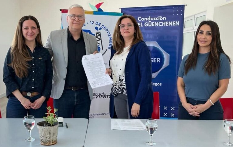 En la entrega de la documentación oficial, se encontraban presentes la Presidenta del Consejo Provincial de Educación, Lic. Iris Rasgido, el asesor en materia educativa de la Mutual 12 de Setiembre, Roberto Borselli, el apoderado legal de la Escuela del Viento, Leonardo Martínez, la Profesora Mariana López Directora de Nivel Secundario, La Profesora Daniela Franchini Directora Provincial de Gestión Privada y Paola Reynoso, Asesora Educativa de la Mutual 12 de Setiembre y SIPGER
