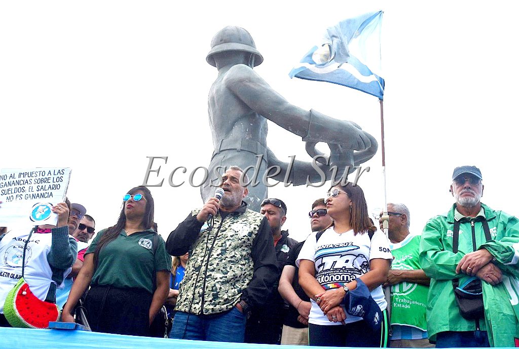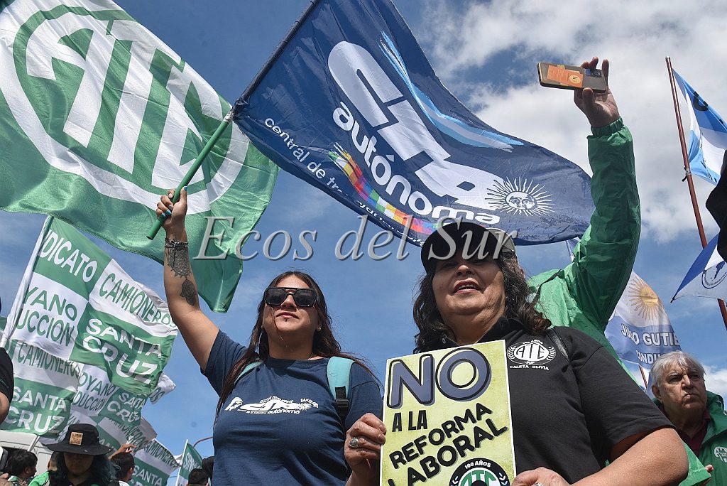 A los afiliados de ese gremio, se sumaron los de la UOCRA, muchos de los cuales arribaron desde Perito Moreno, Truncado y Las Heras, observándose también un gran despliegue de banderas de los sindicatos dea municipales, ARCA (ex AFIP), docentes y no docentes universitarios, empleados bancarios, trabajadores de la televisión, petroleros jerárquicos, vigiladores privados, de la CTA y los partidos Justicialista, Obrero y UCR.