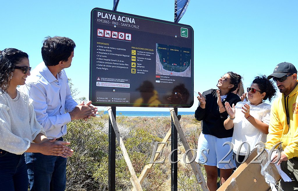 Por su parte, la directora provincial de Áreas Protegidas, Marisol Espino, explicó que Playa Acina es un área protegida, debido a su valor ecológico y ambiental. En ese sentido, remarcó que la cartelería indica la prohibición de circular con vehículos 4×4 y motocicletas, ya que el tránsito sobre la vegetación genera erosión y daño ambiental.