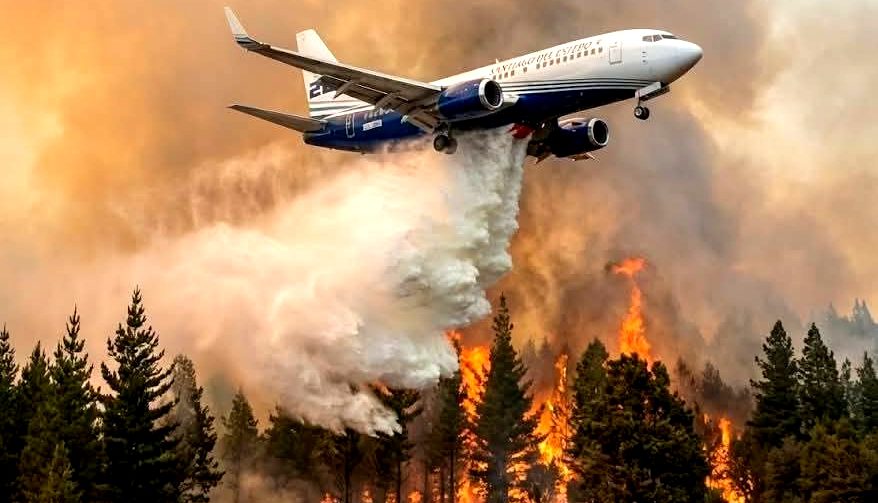 Este jueves comenzó a operar el avión hidrante Boeing 737 Fireliner, enviado por la provincia de Santiago del Estero a la zona cordillerana de Chubut, para dar apoyo al combate de los incendios forestales de la Comarca Andina y el Parque Nacional Los Alerces. Tiene capacidad para transportar hasta15.000 litros de agua o retardante. Realizó su primer lanzamiento de agua sobre las laderas del cerro Pirque, a la altura del paraje La Angostura, en la localidad de Epuyén.