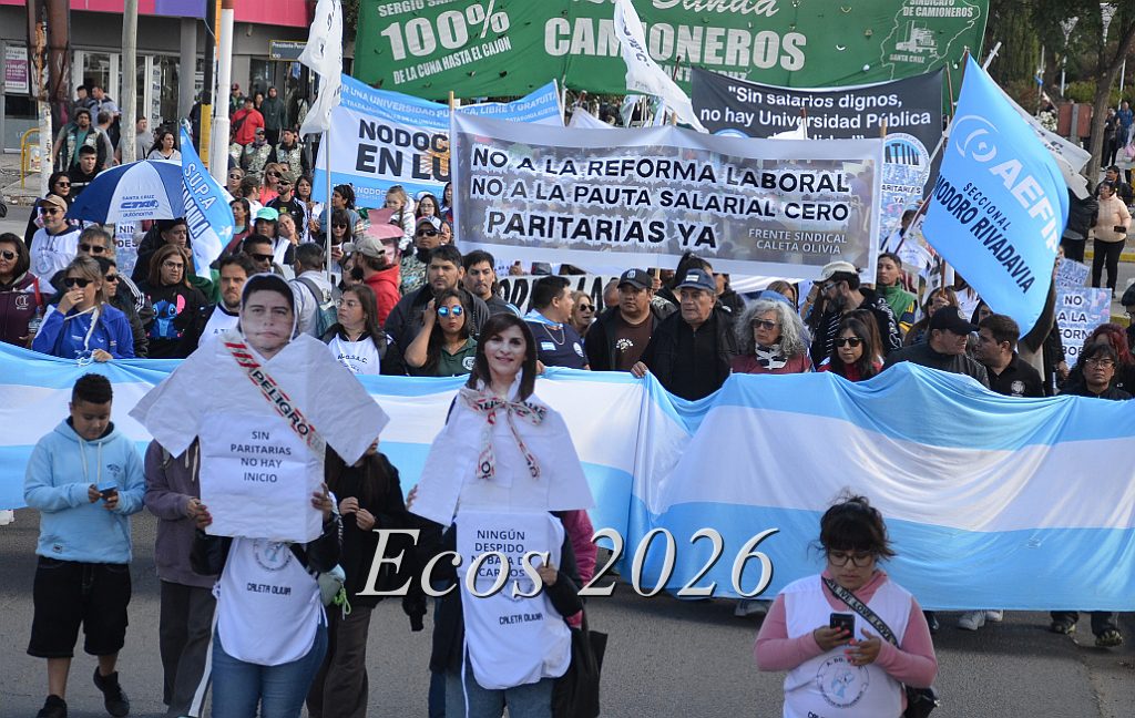 Masiva movilización en Caleta Olivia en rechazo de la reforma laboral Olivia