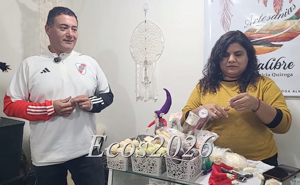 Entre los productos se destacan los duendes “trepadores”, totalmente articulados y elaborados con estructura de alambre y detalles en porcelana. También realizan llaveros, figuras decorativas y trabajos personalizados, que pueden adaptarse según el pedido de los clientes.
