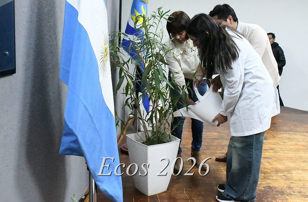 Posteriormente los presentes cantaron el Himno Nacional a viva voz y se convocó a estudiantes, docentes y autoridades a efectuar el riego simbólico de tres plantas que representan valores esenciales de la vida, laurel, laurentino y lavanda.