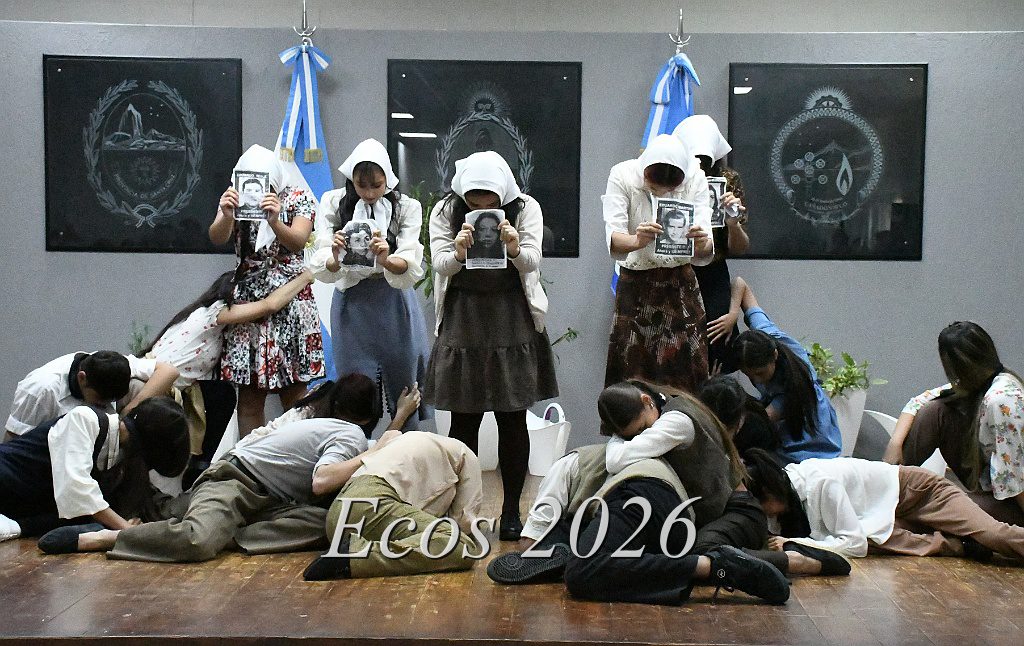 El acto en el Auditorio cerró con una magnifica representación teatral de jóvenes integrantes del instituto Neo Dance, interpretando desgarradoras escenas del sufrimiento de las víctimas de la represión y del rol protagónico de las Madres y Abuelas de Plaza de Mayo.