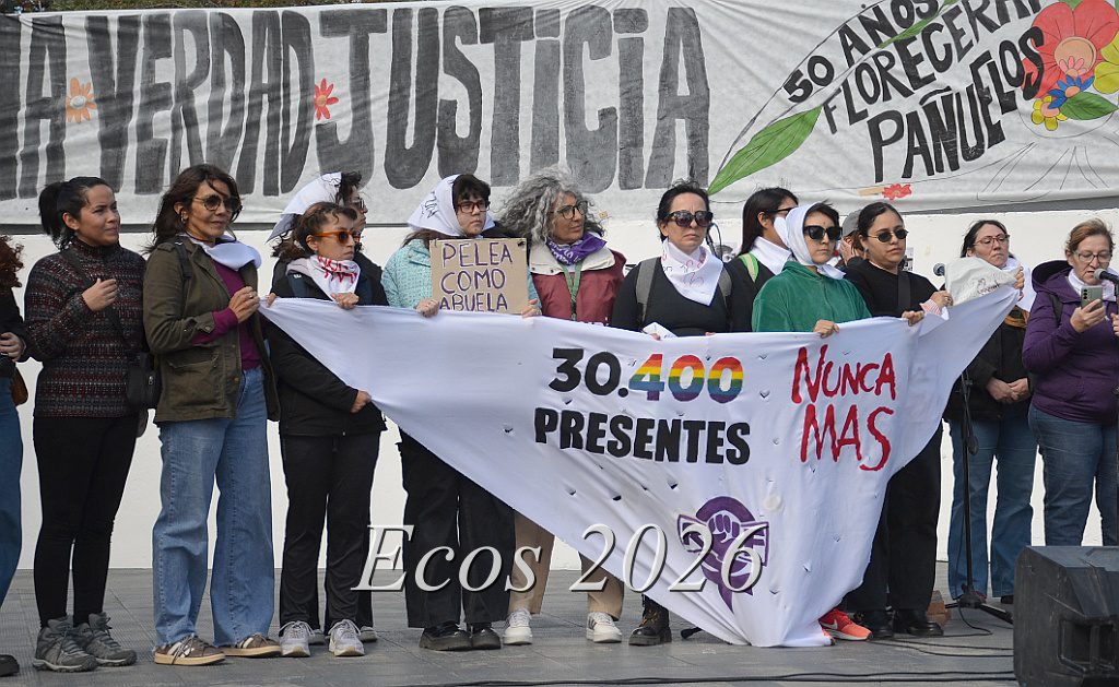 En ese marco, se dio lectura a un documento por el cual se repudió no solo el terrorismo de Estado que impulsó la dictadura al cumplirse 50 del golpe cívico, militar y eclesiástico, sino también a los nostálgicos de este tiempo que siguen negando a los más de treinta mil desparecidos durante los años de plomo.