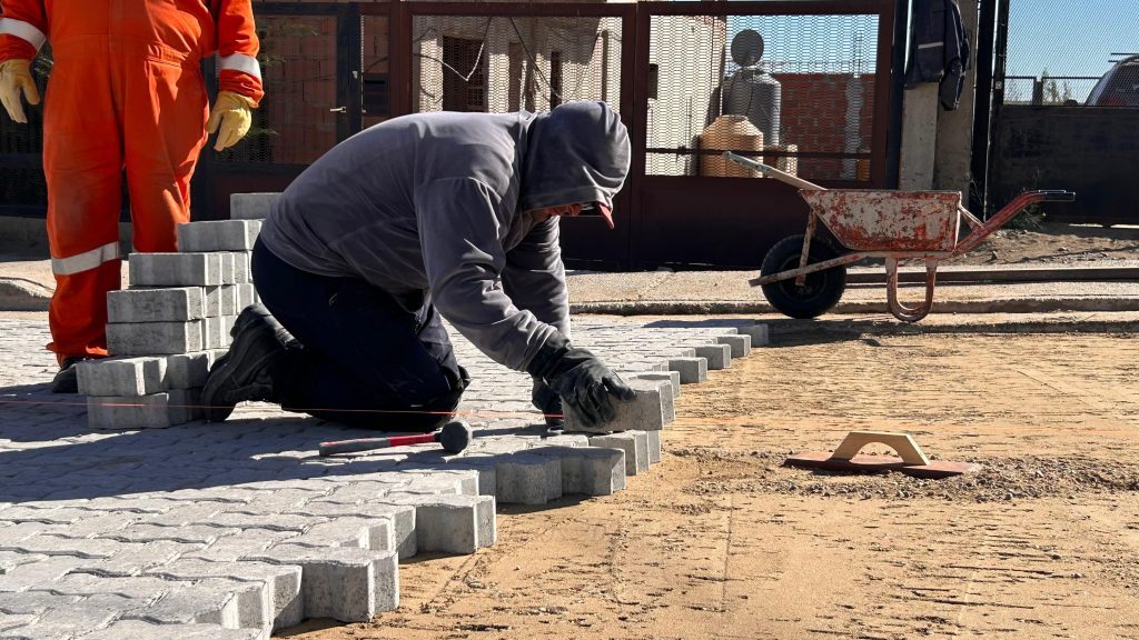 En este sentido, se avanza con la colocación de adoquines sobre la calle Hielos Continentales, una obra que permitirá optimizar la transitabilidad, mejorar la seguridad vial y poner en valor el sector. Las tareas contemplan la preparación del suelo, nivelación y colocación de piezas, garantizando mayor durabilidad y un mejor escurrimiento del agua.