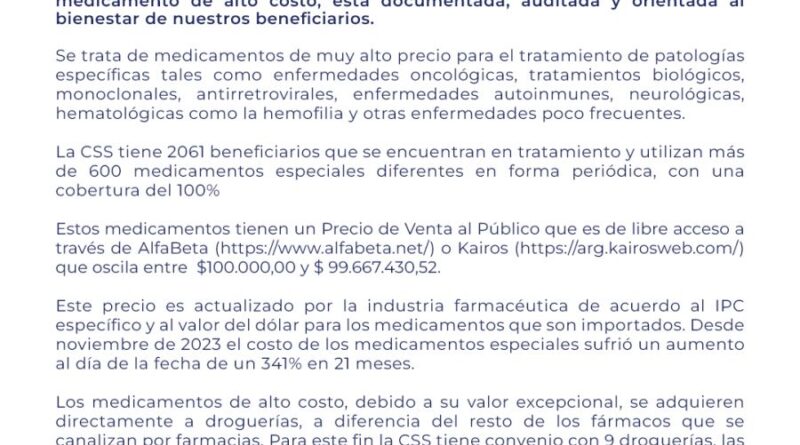 Leer másLunes, 15 Septiembre 2025 – Frente a versiones infundadas, informamos que cada compra de medicamento de alto costo, está documentada,