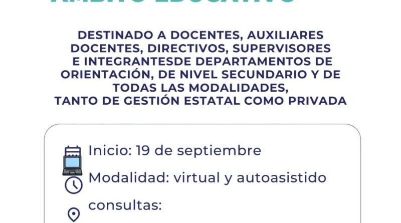 Invitan a participar del curso “Prevención de los consumos problemáticos en el ámbito educativo”
