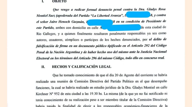 Denuncia penal en La Libertad Avanza Santa Cruz por presunta falsificación de firma en un acta partidaria