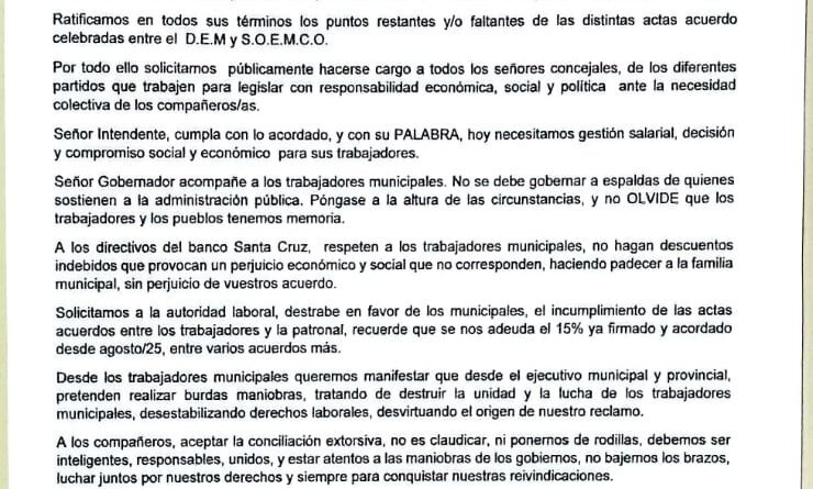 Municipales de Caleta Olivia anunciaron un paro de 24 horas y nuevas medidas de fuerza ante el incumplimiento salarial